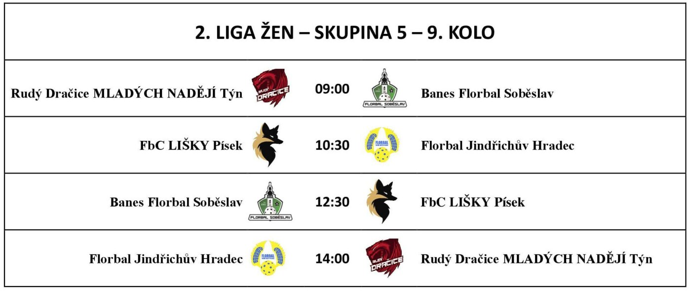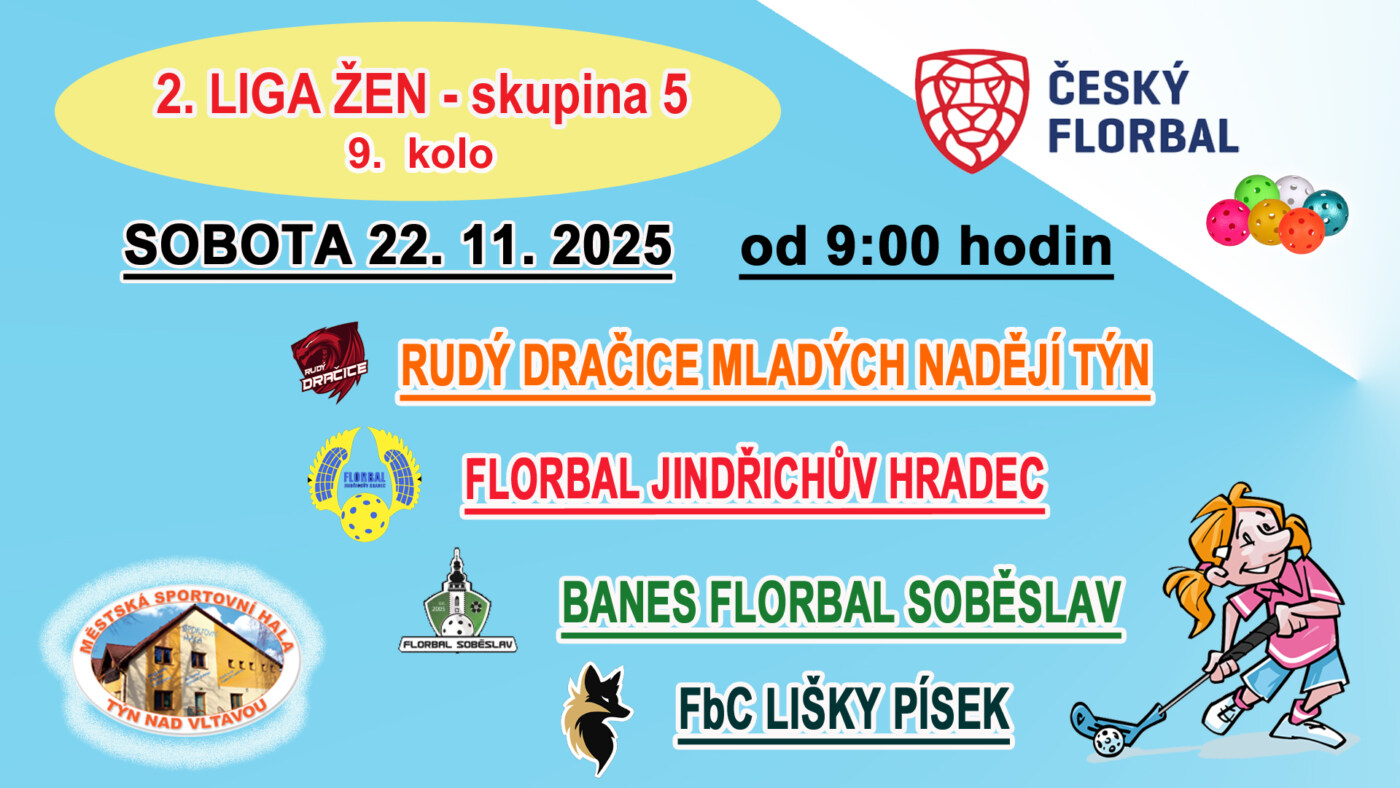 SOBOTA 22.11.2025 – FLORBAL – 2. LIGA ŽEN – SKUPINA 5 – 9. KOLO