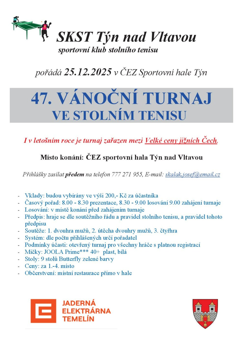 ČTVRTEK 25.12.2025 – 47. VÁNOČNÍ TURNAJ VE STOLNÍM TENISU