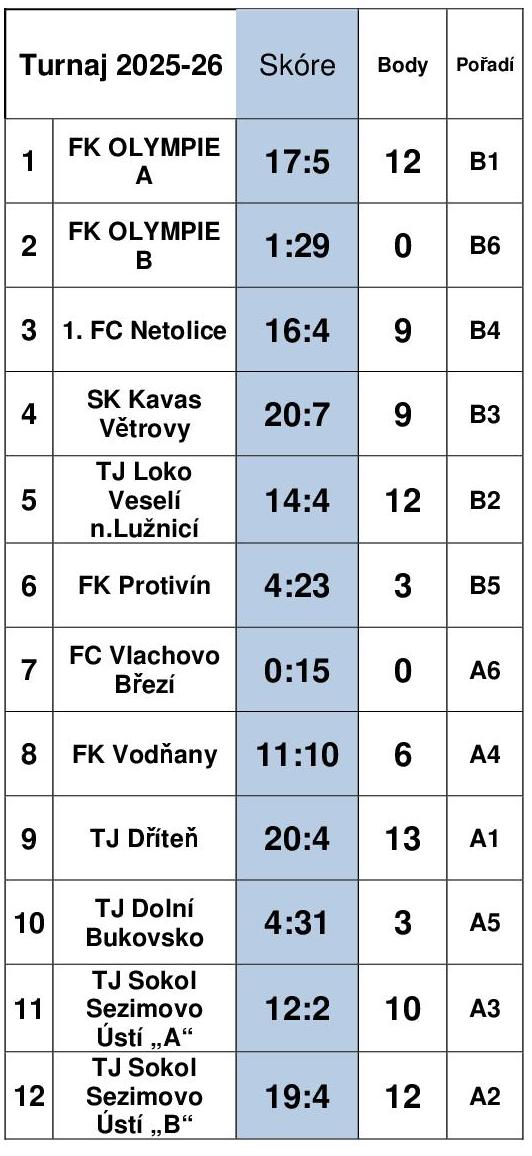 TURNAJ SH – VÝSLEDKY PO 2. KOLE – 04.01.2026