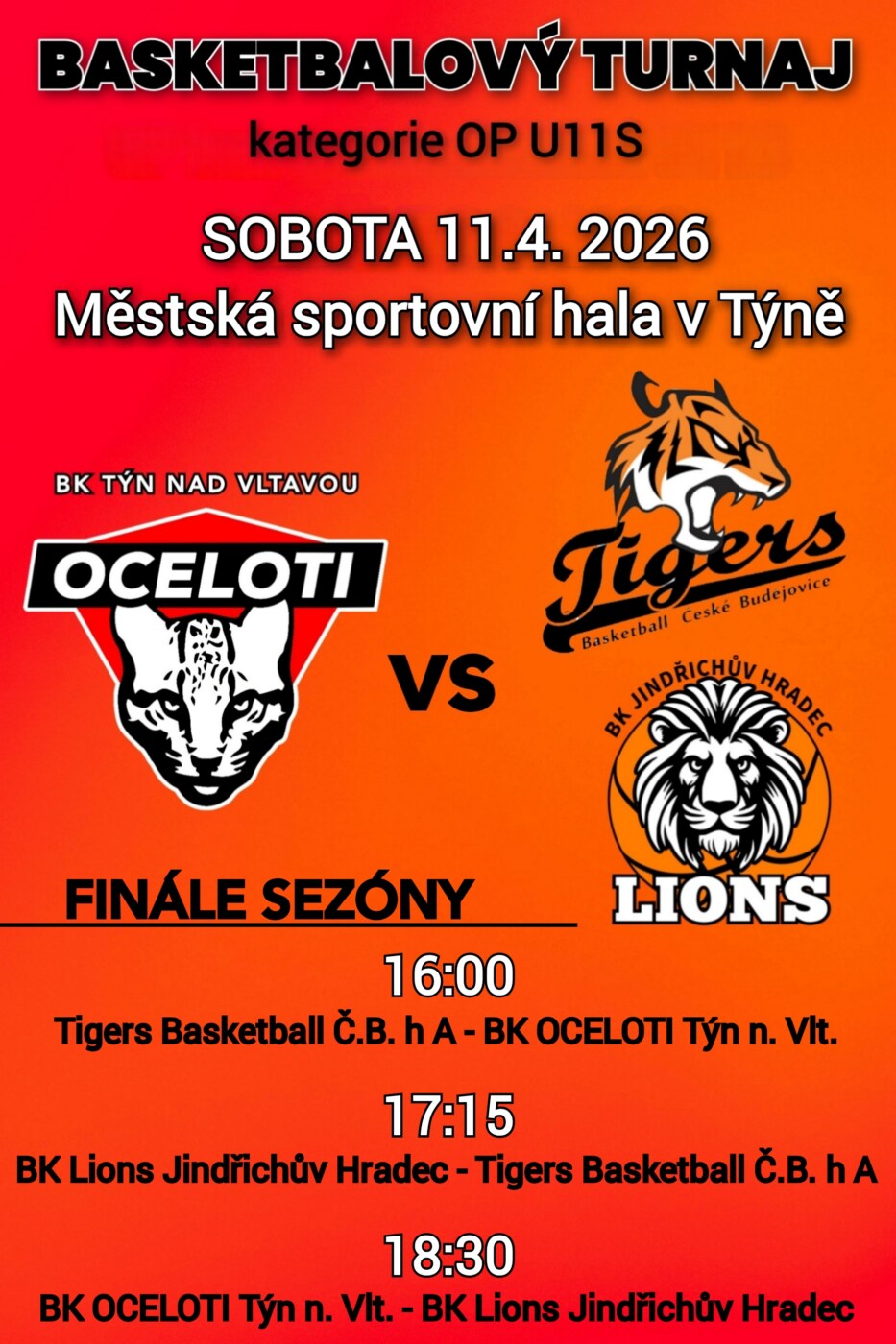 SOBOTA 11.4.2026 – BASKETBALOVÝ TURNAJ – kategorie OP U11S